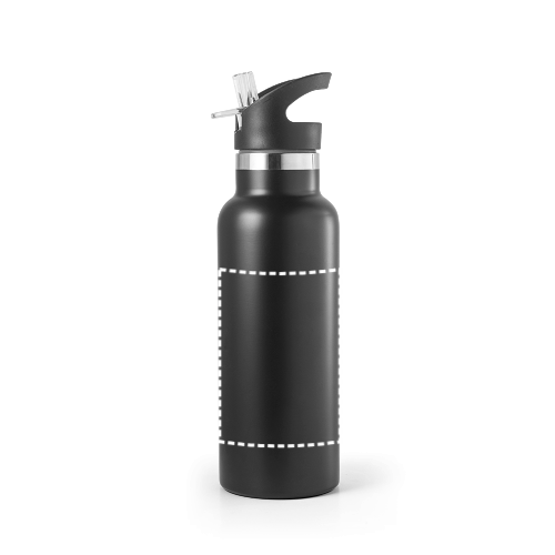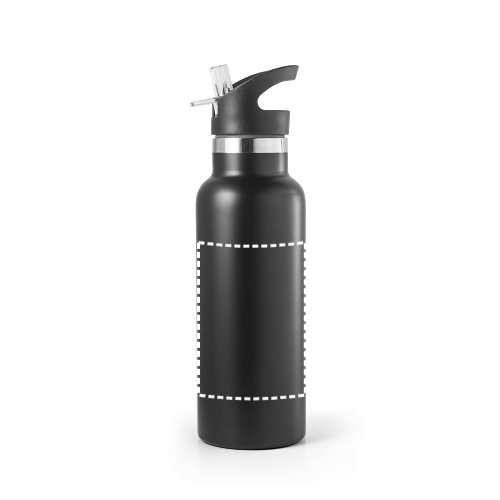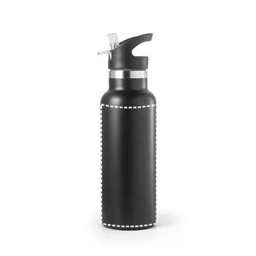 Bouteille en acier inoxydable 90% recyclé à simple paroi. Le couvercle est doté d'une poignée à motifs. Capacité jusqu'à 710 ml. Livrée dans une boîte cadeau en papier kraft