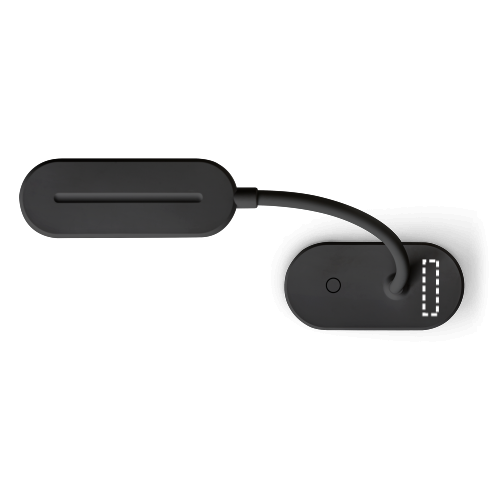 Lampe portative en ABS (65% rABS) avec 140 lumens et une pince pour l'accrocher. La base est anti-dérapante et le tube peut être dirigé à 360° pour facilement ajuster la direction de la lumière. Batterie de 1200mAh intégrée. Bouton on/off avec 3 niveau d'éclairage : lumière forte (environ 3h de durée), lumière moyenne (environ 7h de durée), lumière faible (environ 30h de durée). Inclus un cable USB-C pour recharger. Livré dans une boîte cadeau en papier kraft