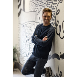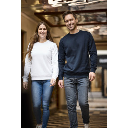Sweatshirt de bonne qualité fabriqué dans un matériau confortable, doux et avec un toucher légèrement plus lourd, brossé à l'intérieur. Bord-côtes 2x2 au niveau du cou, des poignets et du bas.