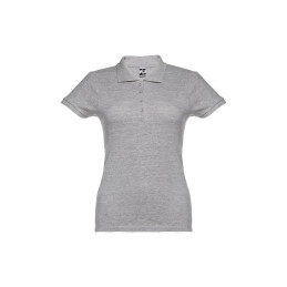 Polo technique à manches courtes pour femme en maille piquée 100% polyester recyclé (180 g/m²). Ce polo a un col en rib 1x1 et des doubles coutures sur les manches et le bas. Patte de boutonnage renforcée avec 3 boutons colorés finis en noir. Pièce coupée et cousue avec petites ouvertures latérales au bas du polo et finition noire