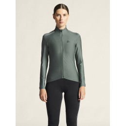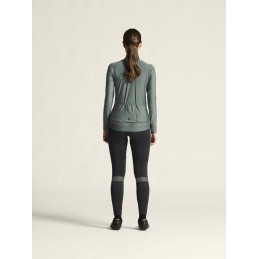 Jersey de cyclisme perfectionné à manches longues fabriqué dans une matière élastique, avec intérieur brossé en polyester recyclé. Quatre poches derrière (dont une zippée) et bande en silicone dans le dos.