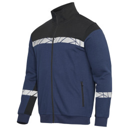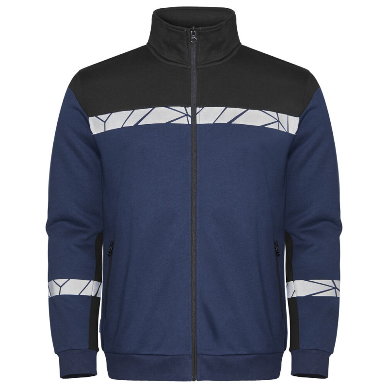 Sweat-shirt avec fermeture éclair intégrale à l'avant. Intérieur brossé pour une sensation douce et agréable. Poches sur les deux côtés avec fermeture éclair. Bande de contraste au niveau du col. Bord-côte 2x2 aux poignets et à la base du sweat-shirt. Poche pour puce de blanchisserie sur la couture intérieure du côté gauche. • Testé pour le lavage industriel selon la norme ISO 15797 • Visibilité accrue EN 17353 • Certifié Oeko-Tex 100 • Fourni dans un sac compostable à base de matières biosourcées