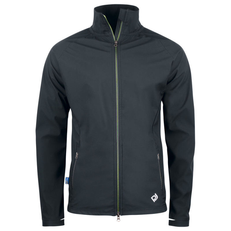 Veste coupe-vent de coupe moderne en matière élastique. Fermeture éclair bidirectionnelle de couleur verte avec protège-menton. Deux poches latérales également avec fermeture éclair contrastée. Deux poches intérieures. Réglable à l'ourlet. Passe-pouce sur la partie avant de la manche.