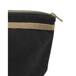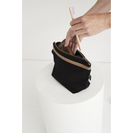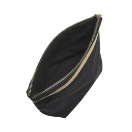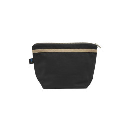 Petite trousse de toilette comprenant un grand compartiment et deux poches intérieures. Fermeture éclair de couleur bronze en métal avec une finition antique. Doublure noire pour les deux couleurs.