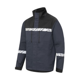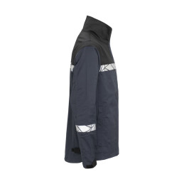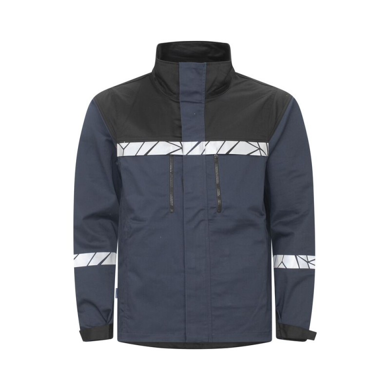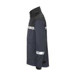 Veste de travail entièrement zippée jusqu'au col à l'avant, avec patte de boutonnage extérieure pour empêcher la saleté et les courants d'air de pénétrer, se fermant avec du velcro. Poches latérales et poches poitrine généreuses des deux côtés, toutes les poches se ferment par une fermeture éclair. Sur le côté gauche, un support externe permet de fixer une carte d'identité. Grandes poches intérieures ouvertes des deux côtés, ainsi qu'une poche pour téléphone portable avec fermeture velcro. Poignets réglables par Velcro, largeur réglable sur les côtés par Velcro. Poche pour puce de lavage dans la couture intérieure gauche. • Visibilité accrue EN 17353 • Fourni dans un sac compostable à base de matières biosourcées