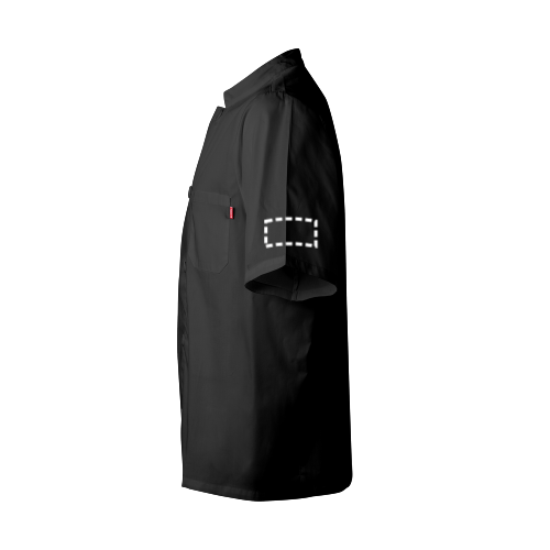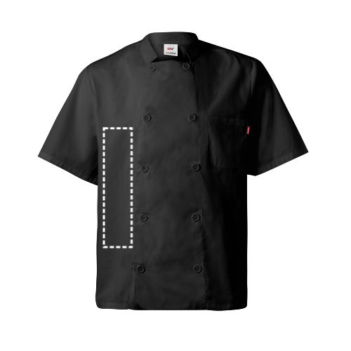 Veste en sergé bicolore (210g/m²) en polyester (80%) et coton (20%). Fermeture éclair centrale, ceinture latérale élastiquée et poignets côtelés. Bandes réfléchissantes sur le torse et les manches et deux poches poitrine avec fermeture éclair