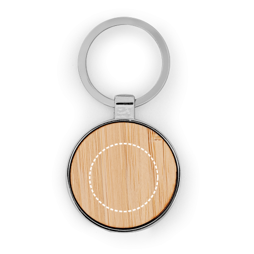Porte-clés en fer de forme ronde en zinc et bambou. La fonction décapsuleur fait de ce porte-clés un accessoire pratique à avoir toujours à portée de main. Pochette en papier kraft