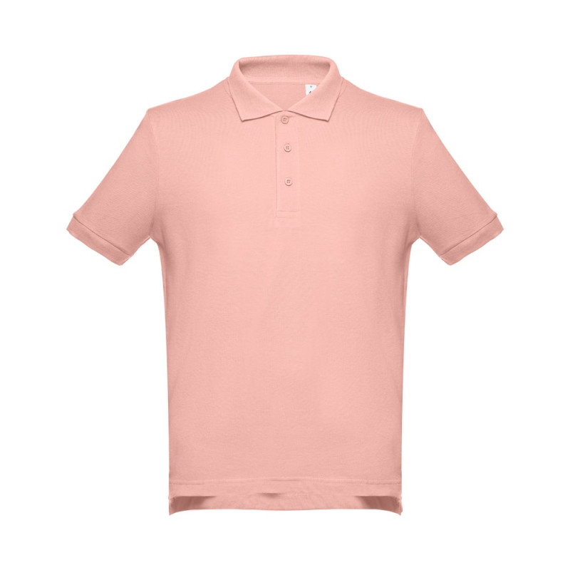 Polo pour homme en maille piquée 100% coton (195 g/m²) (couleur 183: 85% coton/15% viscose). De coupe régulière, ce polo possède un col et des manches côtelés, le col étant renforcé par une bande de propreté. Sur le devant, à côté du col, il y a trois boutons colorés (bouton de remplacement inséré dans la coutûre inférieure).Pièce coupée et cousue avec de petites ouvertures latérales sur la partie inférieure