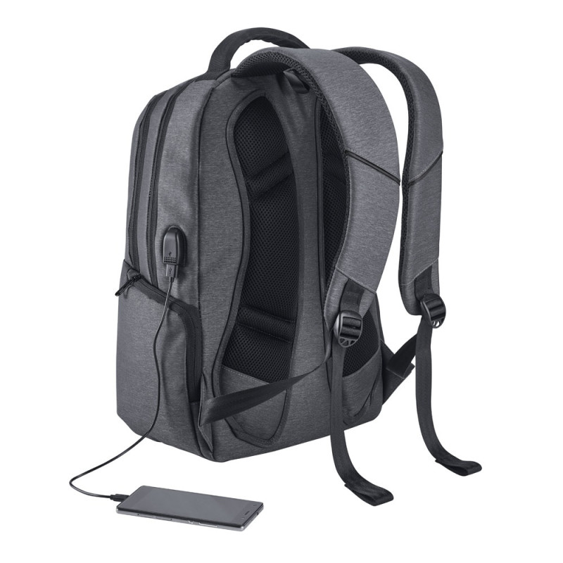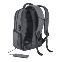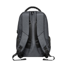 Sac à dos pour ordinateur en 600D haute densité. Le produit possède un compartiment avec deux divisions rembourrées pour ordinateur jusqu'à 15.6'' et tablette 9.7''. L'intérieur est doublé et rembourré. Contient une poche frontale et deux latérales. La partie arrière est rembourrée et possède un système d'appui matelassé pour le dos ainsi que des anses...