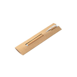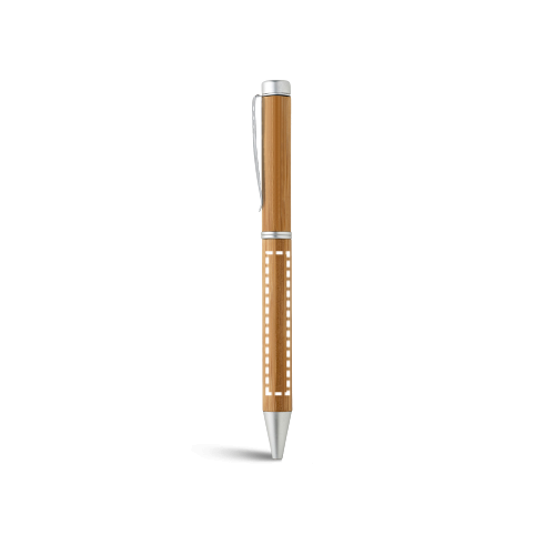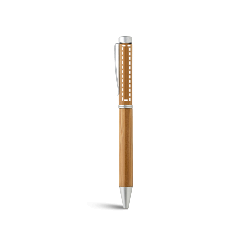 Stylo à bille en bambou et ABS avec finition métallique mate. Dispose d'un mécanisme twist et d'un clip en métal. Encre noire