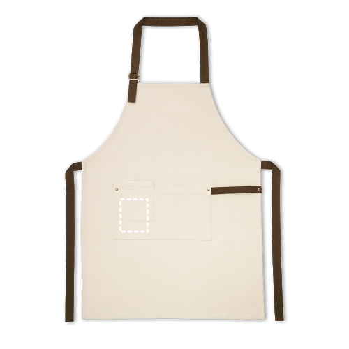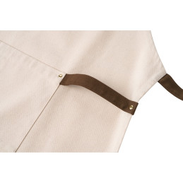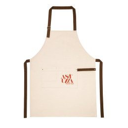 Tablier em coton peigné 100% coton. coloris écru avec attributs de couleurs. tablier avec 1 poche frontal et cordon de serrage. Disponible en différents coloris