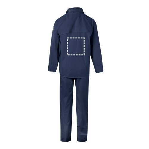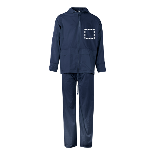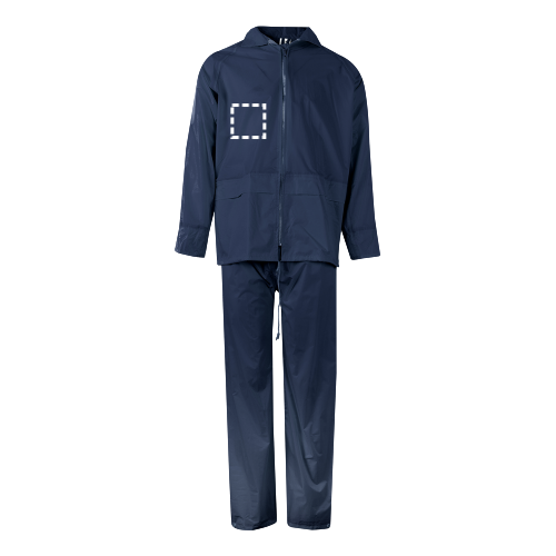 Ensemble de pluie (130g/m²), en polyester (100%) avec revêtement PU.Veste avec fermeture éclair centrale, bandes réfléchissantes sur le torse et les manches et capuche cachée dans le col. La maille intérieure en polyester (100 %) et les œillets métalliques favorisent la respirabilité. La veste est réglable à l'aide d'un bouchon et possède deux poches...