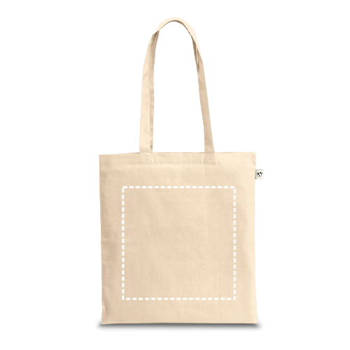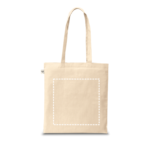 Sac 100% coton (220 g/m²), avec anses de 65 cm. Produit fabriqué selon une norme certifiée pour l'utilisation de substances nocives dans le textile