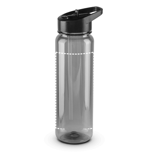 Bouteille de sport en PET recyclé (100% rPET), avec une finition givrée. Couvercle étanche en PS avec sangle en silicone pour faciliter le transport. Capacité jusqu'à 600 ml