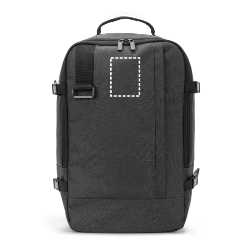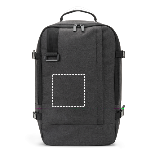 Ce sac à dos, conçu pour répondre aux dimensions exigées par les compagnies aériennes, vous permet de voyager avec tout ce dont vous avez besoin comme un bagage à main. Fabriqué en polyester recyclé haute densité 600D avec un repoussant déperlant et une doublure en polyester recyclé 210D. Il dispose d'un grand compartiment principal pour les vêtements, d'un compartiment entièrement rembourré pour un ordinateur portable jusqu'à 14 pouces et d'un poche avant. Le sac à dos vous offre un plus grand confort lors de vos déplacements grâce à sa poignée supérieure rembourrée, ses sangles de compression sur les côtés qui vous permettent d'ajuster la taille du sac à dos à votre volume et son dos en filet avec sangle de trolley. L'avant est doté d'une partie permettant de suspendre un objet, tel qu'u