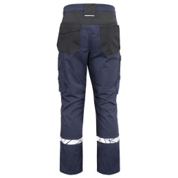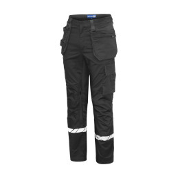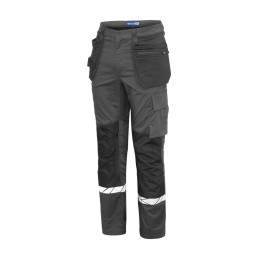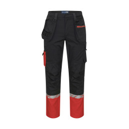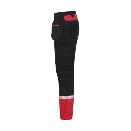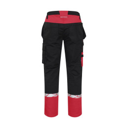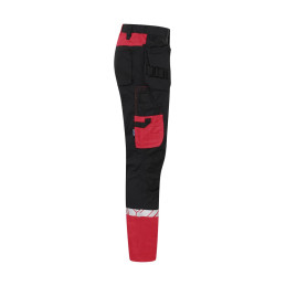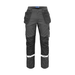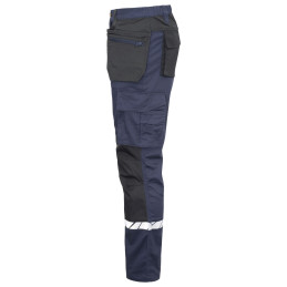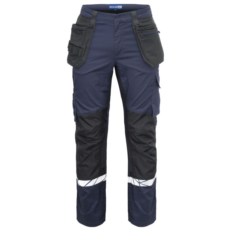 Pantalon de travail avec poches latérales ouvertes et poches arrière extra-larges, côté gauche avec rabat et fermeture magnétique. Poches étuis des deux côtés pour outils, stylos, etc. Poches sur les jambes, sur le côté gauche avec rabat et fermeture magnétique, poche interne pour téléphone et support pour carte d'identité. Sur le côté droit, poche pour mètre pliant et poche pour outils avec bouton pour couteau. Poches de protection des genoux, s'ouvrant de l'extérieur par une fermeture à glissière. Passant de ceinture plus large à l'arrière pour éviter la pression de la ceinture. Bouton caché sur le devant. Genoux pré-pliés, tissu extensible à l'entrejambe et bande extensible cousue à la taille pour un meilleur confort. Renforcement de la poche pour mètre pliant, des poches arrière et des genoux pour une plus grande durabilité. • Testé pour le lavage industriel selon la norme ISO 15797 • Visibilité accrue EN 17353 • Fourni dans un sac compostable à base de matières biosourcées
