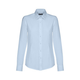 Chemise oxford pour femme à manche longue, 70% coton et 30% polyester (130g/m²). Poignets ajustables avec 2 boutons. Coupe cintrée avec 2 pinces sur le devant et 2 pinces au dos. Patte de boutonnage à 7 boutons